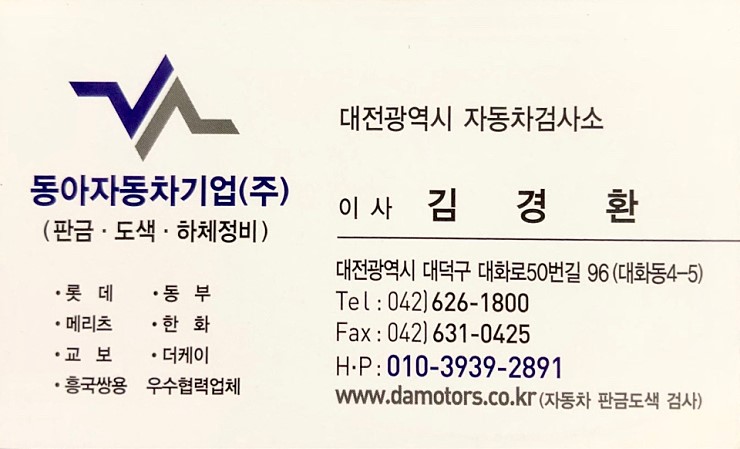 • µ¿¾ÆÀÚµ¿Â÷±â¾÷(ÁÖ)/´ëÀü±¤¿ª½Ã ÀÚµ¿Â÷°Ë»ç¼Ò