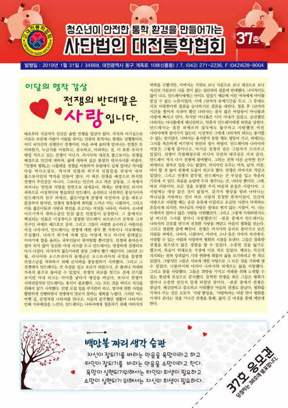 37 2019³â1¿ù ´ëÀüÅëÇÐÇùȸ¼Ò½ÄÁö Á¦37È£ Çѱ¹±³Åë¾ÈÀü 2019-03-06